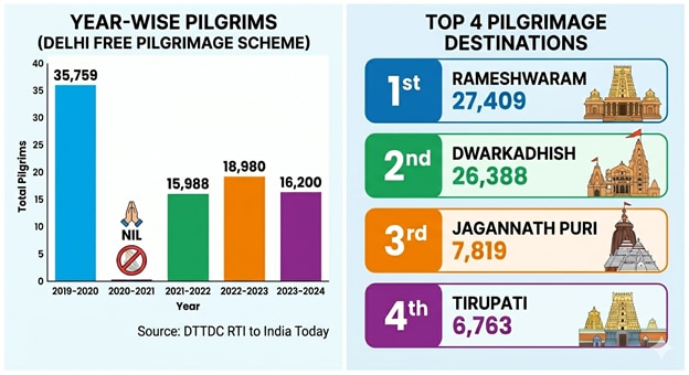 दिल्ली सरकार की एक बड़ी योजना है जिसमें बुजुर्गों को मुफ्त में तीर्थ यात्रा कराई जाती है. इस योजना को आम आदमी पार्टी (AAP) सरकार ने बड़े जोर-शोर से शुरू किया था. लेकिन इंडिया टुडे ने RTI यानी सूचना के अधिकार के जरिए जो जानकारी मांगी, उससे कुछ चौंकाने वाली बातें सामने आई हैं. यात्रियों की संख्या पहले बढ़ी, फिर घटती रही. और सबसे बड़ी बात है कि सरकार के पास कई जरूरी आंकड़े ही नहीं हैं. आइए पूरा मामला समझते हैं.