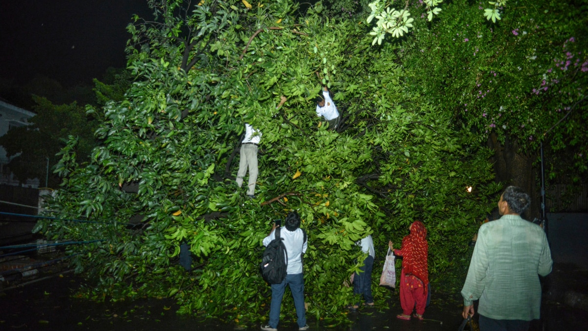 दिल्ली-NCR समेत उत्तर भारत के कई राज्यों में बुधवार रात मौसम ने अचानक करवट ले ली है. भयंकर बारिश और तूफान से जनजीवन प्रभावित हो गया. कई इलाकों में बिजली आपूर्ति ठप हो गई है, कई जगहों पर ट्रैफिक बाधित होने से लंबा जाम लगा रहा. तूफान के चलते पेड़, होर्डिंग्स और बोर्ड गिरने की खबरें आईं. दिल्ली के सफदरजंग में 79 KM प्रतिघंटे की रफ्तार से हवाएं चलीं. गाजियाबाद में तेज आंधी के बाद बारिश हुई. जबकि कई इलाकों में ओलावृष्टि भी हुई. बागपत में भी तेज आंधी और बारिश के साथ ओले गिरे. वहीं, चंडीगढ़ में तूफान के चलते सेक्टर-22 में कई पेड़ गिर गए.