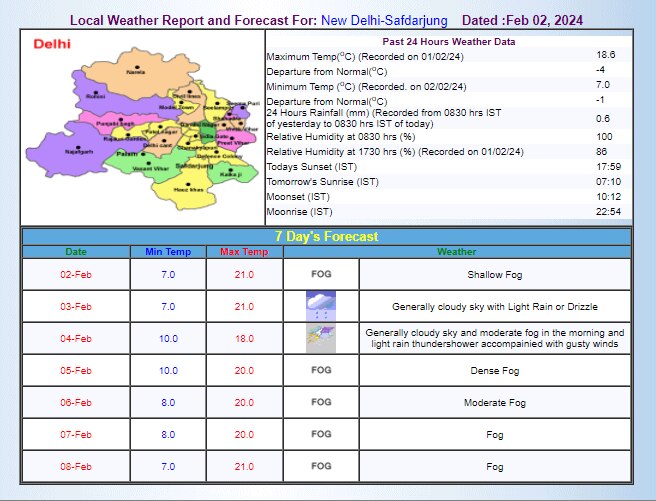 इसके बाद 5 फरवरी को एक बार फिर घना कोहरा सताएगा. बता दें कि दिल्लीवालों को अभी कोहरे से राहत की कोई उम्मीद नहीं है. आईएमडी के मुताबिक, 15 फरवरी तक दिल्ली में कोहरा रहेगा. इसके साथ ही ठंड में भी कोई खास कमी की उम्मीद नहीं है. 8 फरवरी तक दिल्ली का न्यूनतम तापमान 7 से 8 डिग्री सेल्सियस के बीच रहेगा और अधिकतम तापामन 20 से 21 डिग्री सेल्सियस रह सकता है.