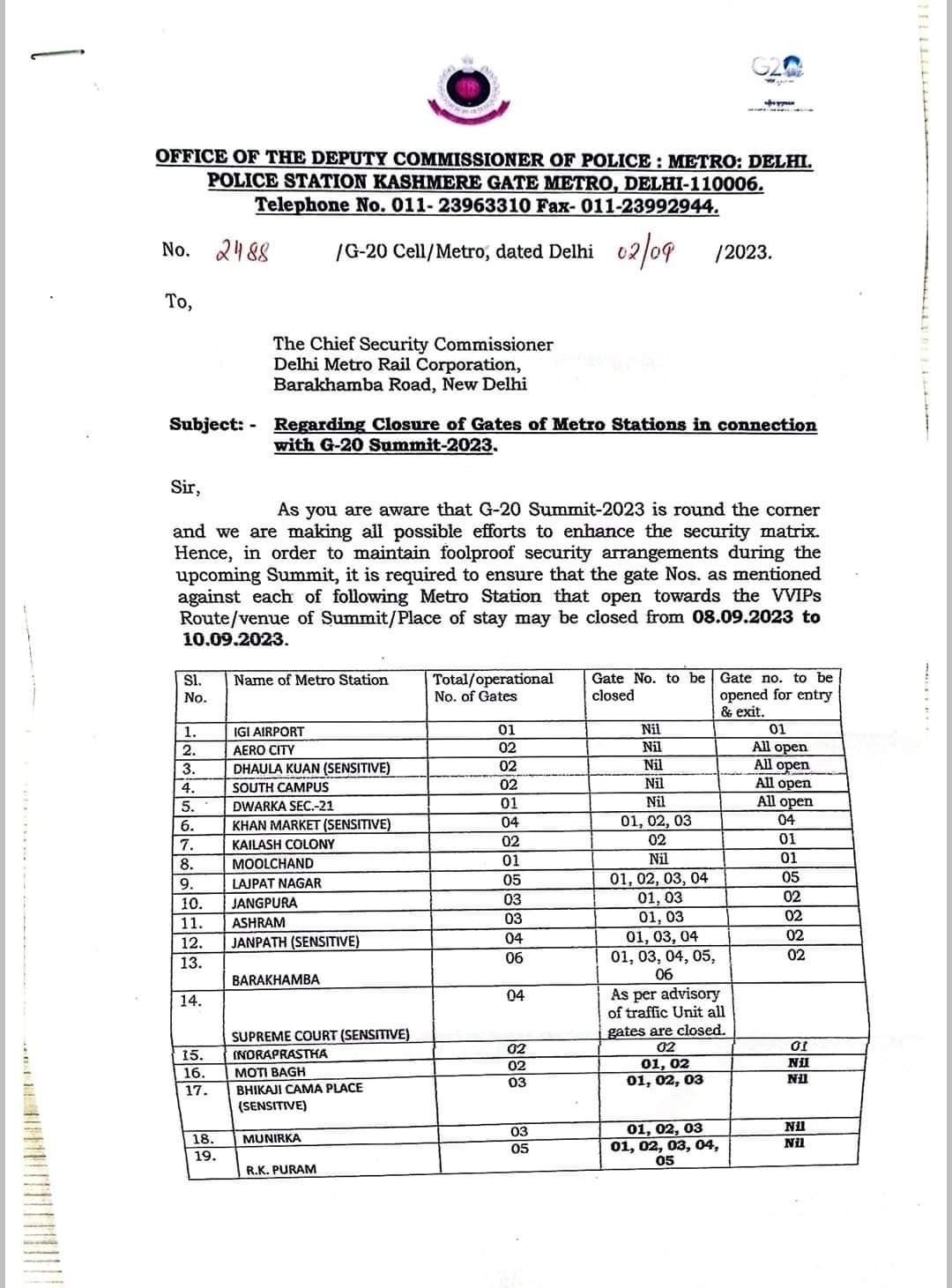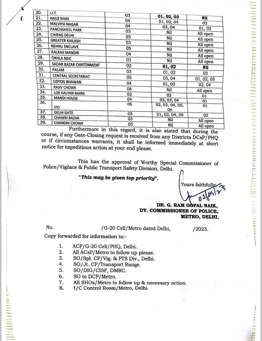 आइए देखते हैं 8 से 10 सितंबर को किस मेट्रो स्टेशन के कौन-कौन से गेट बंद रहेंगे....