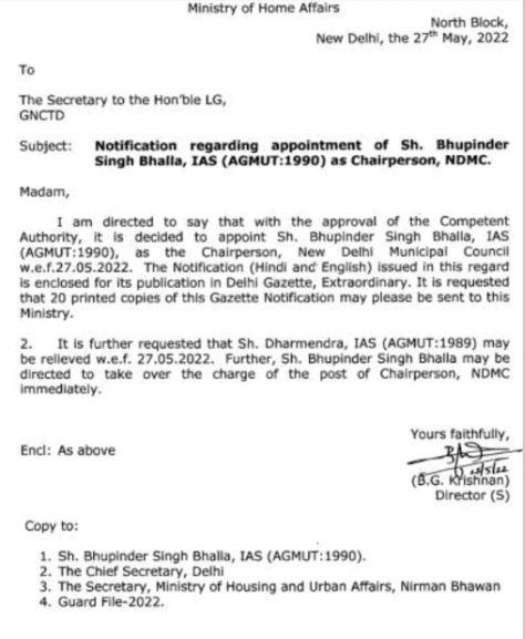 भूपिंदर सिंह भल्ला को नई दिल्ली नगर परिषद (एनडीएमसी) का नया अध्यक्ष नियुक्त किया गया है. शुक्रवार को जारी आधिकारिक आदेश के अनुसार, वर्तमान में दिल्ली के अतिरिक्त मुख्य सचिव के रूप में तैनात भूपिंदर 1989 बैच के अधिकारी धर्मेंद्र की जगह नगर निकाय के अध्यक्ष होंगे. भल्ला 1990 बैच के आईएएस अधिकारी हैं.
