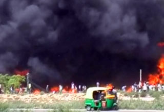 आग और हंगामे की वजह से पूरे इलाके में अफरातफरी मच गई. सैंकड़ों लोग बेघर हो गए हैं.