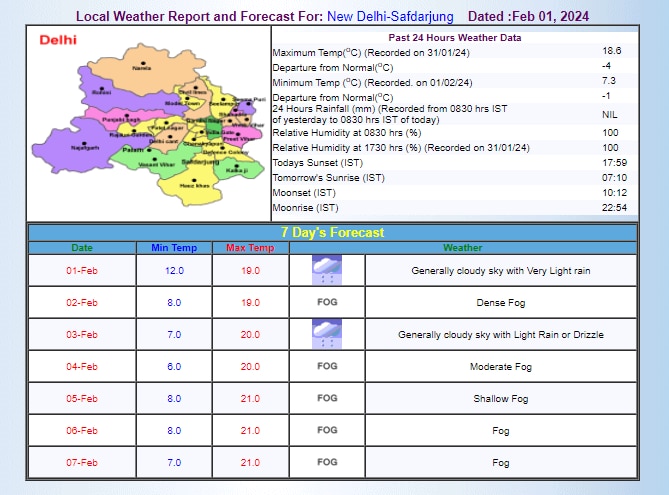 बता दें कि झमाझम बारिश के बाद दिल्लीवालों को ठंड से कुछ राहत मिली है. राजधानी में आज न्यूनतम तापमान बढ़कर 12 डिग्री और अधिकतम तापमान 19 डिग्री सेल्सियस दर्ज किया जा सकता है. लेकिन कल यानी 2 फरवरी को एक बार फिर घना कोहरा वापसी कर सकता है और एक बार फिर तापमान में कमी के साथ ठंड बढ़ सकती है यानी दिल्लीवालों को अभी न ठंड से राहत मिलने वाली है और न ही कोहरे से. वहीं, एक दिन की राहत के बाद फिर बारिश देखी जाएगी.