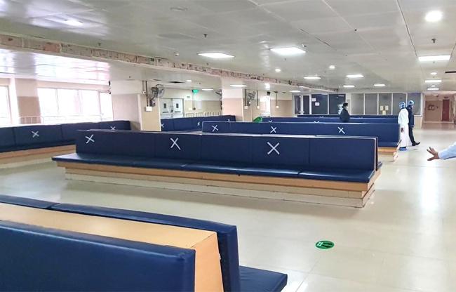 5. ओपीडी रजिस्ट्रेशन के बाद मरीज़ को संबंधित विभाग में जाना होगा जहां डॉक्टर्स की टीम मौजूद होगी. हर विभाग के सामने वेटिंग एरिया में मरीज़ों के बैठने के लिए खास सोफे का इंतज़ाम किया गया है, लेकिन यहां हर सीट के बीच क्रॉस का निशान बनाया गया है ताकि मरीज़ों के बीच उचित दूरी बनी रहे.