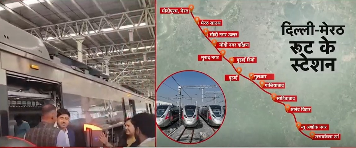नमो भारत ट्रेन फिलहाल न्यू अशोक नगर से मेरठ साउथ स्टेशन तक चलेगी. न्यू अशोक नगर से सराय काले खां तक का 5 किलोमीटर हिस्सा बन चुका है. जबकि मेरठ साउथ से मोदीपुरम तक का स्ट्रक्चर भी बनकर तैयार है. पीएम मोदी आज इन दोनों खंडों का भी उद्घाटन करेंगे.