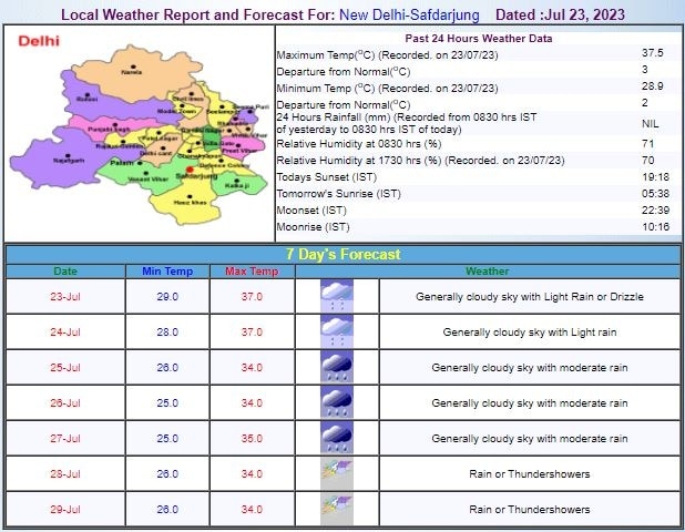 वहीं, उमस भरी गर्मी से परेशान दिल्ली के लोगों को बारिश का भी इंतजार है. मौसम विभाग की मानें तो दिल्ली में आज, 24 जुलाई को हल्की से मध्यम बारिश होने की संभावना है. वहीं, तापमान की बात करें तो अधिकतम तापमान 37 डिग्री सेल्सियस और न्यूनतम तापमान 28 डिग्री रह सकता है. 25 से 27 जुलाई तक दिल्ली में बारिश की गतिविधियां तेज होने की संभावना है. ऐसे में बारिश होने से दिल्ली के कई इलाकों में जलभराव की स्थिति देखने को मिल सकती है.