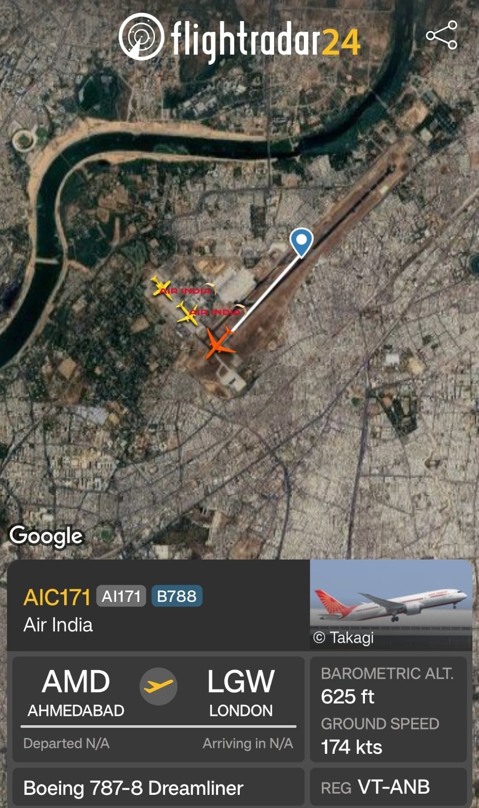 Flight AI171, operating Ahmedabad-London Gatwick, was involved in an incident today, 12 June 2025. At this moment, we are ascertaining the details and will share further updates at the earliest on https://t.co/Fnw0ywg2Zt and on our X handle (https://t.co/Id1XFe9SfL).