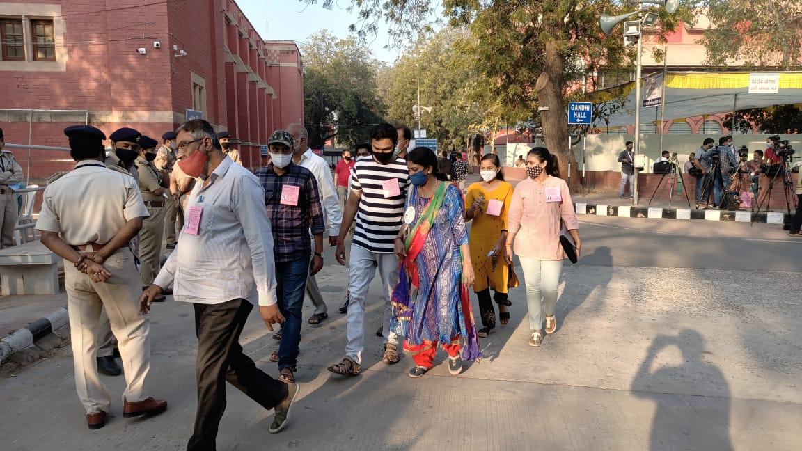 भारतीय जनता पार्टी (बीजेपी) ने अहमदाबाद सहित राज्य की छह नगर निगम चुनावों में जीत के जश्न की तैयारी शुरू कर दी है. शुरुआती रुझानों में भाजपा सभी नगर निगमों में एकतरफा बहुमत से जीत रही है. अहमदाबाद के खानपुर इलाके में स्थित भाजपा कार्यालय में शाम 7 बजे विजय सभा का आयोजन किया गया है. विजय सभा में गुजरात प्रदेश अध्यक्ष सीआर पाटिल, मुख्यमंत्री विजय रूपाणी और केंद्रीय गृह मंत्री अमित शाह शामिल हो सकते हैं.