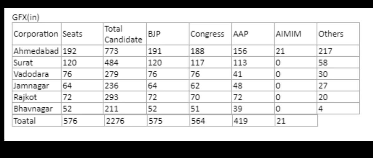गुजरात की 6 नगर निगमों की कुल 575 सीटों के नतीजे आज आएंगे. भाजपा और कांग्रेस ने इस चुनाव को आगामी विधानसभा चुनावों को देखते इतना अधिक महत्व दिया है कि खुद गृहमंत्री अमित शाह भी अपने पूरे परिवार के साथ वोट डालने के लिए पहुंचे थे. वैसे ये जंग इस बार कांग्रेस और भाजपा के बीच ही नहीं है, बल्कि इस बार आम आदमी पार्टी और AIMIM भी इन बड़ी पार्टियों का गणित बिगाड़ सकती हैं.