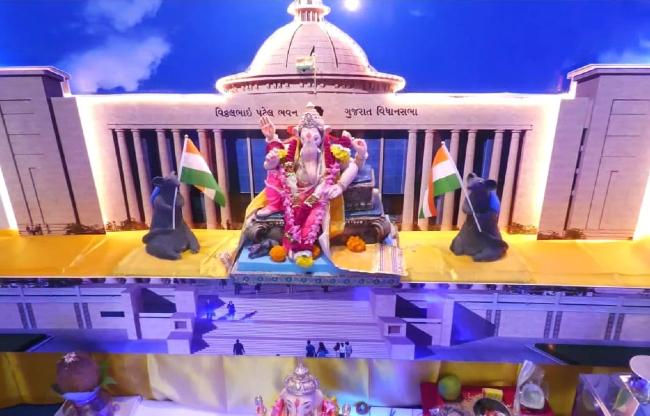 दरअसल, आप ने सूरत के गोपीपुरा इलाके में एक अनोखा गणेश पंडाल तैयार किया है. इस पंडाल को गुजरात विधानसभा भवन की तर्ज पर डिजाइन किया गया है. इसे आप नेता सुशांत कपाड़िया ने तैयार किया है. आप ने इसे 'आप का राजा' नाम दिया है. इस पंडाल में गणेशजी की दो प्रतिमाएं रखीं गई हैं. साथ ही यहां मूषक भी है, जो अपने मुंह में झाड़ू दबाकर गुजरात से भ्रष्टाचार, शोषण, अराजकता और महंगाई साफ करने की आप की कोशिश को दिखा रहा है.
