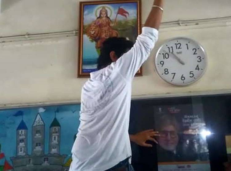 उन्होंने स्कूल प्रशासन को कहा कि यह क्रिश्चियन स्कूल है इसलिये मां सरस्वती की फोटो स्कूल में नहीं लगाते ये हम समझ सकते हैं, लेकिन आप भारत मां की तस्वीर तो स्कूल में लगा सकते हैं. इसके बाद साथ लाए भारत मां की तस्वीर को उन्होंने दीवार पर टांग दिया. हालांकि इस हंगामे के बाद स्कूल ने तुंरत ही अपने फैसले को वापस ले लिया और छात्राओं को स्कूल में बैठने की अनुमति दे दी.