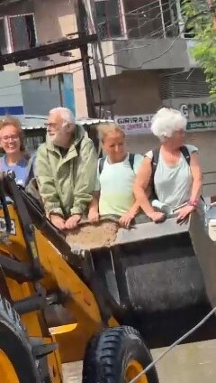 गुजरात के बाढ़ में फंसे विदेशी नागरिकों को JCB से बाहर निकाला गया. नागरिकों को JCB में आगे खड़ा कर फिर बाहर निकाला गया.