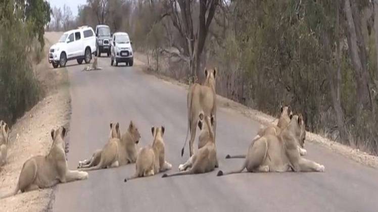 दिन के समय पर्यटक शासनगिर की ओर जा रहे थे, तभी अचानक उन्होंने सड़क के किनारे शेरों के झुंड को देखा. धीरे-धीरे पूरा शेरों का परिवार सड़क पर उतर आया और कुछ देर तक वहीं टहलता रहा. सड़क पर मौजूद लोगों ने तुरंत अपने वाहनों को रोक लिया और सुरक्षित दूरी बनाकर इस नजारे को देखा.