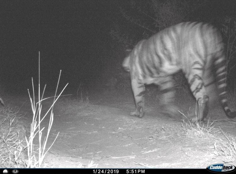 इसके बाद वन विभाग ने पैरों और चमड़ी के मिले निशानों के आधार पर जांच की तो लगा कि हो सकता है ये बाघ हो. वन विभाग ने इसकी पुष्टि के लिए माइक्रो सेंसेटिव नाइट विजन कैमरे को इस पूरे इलाके में लगाया. बाद में जब कैमरे में मौजूद फुटेज की जांच की गई तो उसमें सोमवार-मंगलवार के दरम्यान रात एक बाघ को देखा गया. तब जाकर वन विभाग ने इस इलाके में बाघ होने की पुष्टि की.