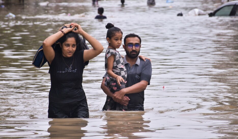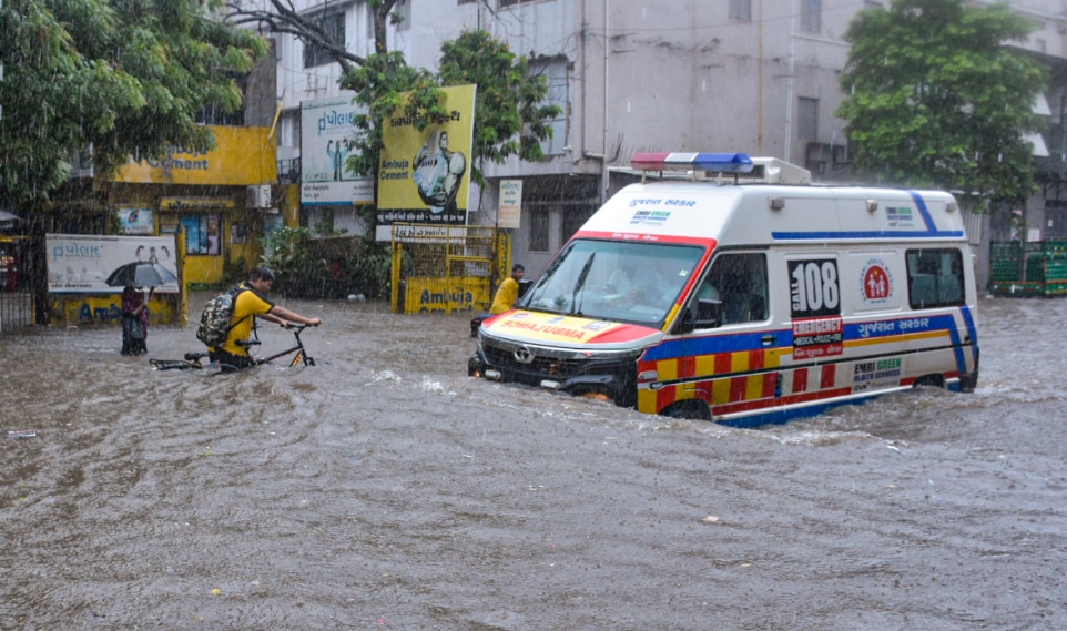 इस संकट काल की सबसे हाहाकारी तस्वीरें गुजरात के सूरत से आई हैं. मंगलवार शाम तक 36 घंटे में वहां करीब 400 मिलीमीटर बारिश रिकॉर्ड की गई. यहां भारी बारिश का संकट 3 दिनों से जारी है और उसका नतीजा है कि शहर की सड़कें डूब गई हैं. घरों में पानी घुसा है. कई जगहों पर गाड़ियां फंसी हैं.