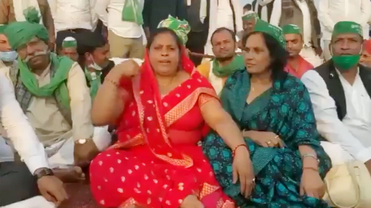 वीडियो में यह महिला खुद को किसान आंदोलन में शामिल किसान एकता संघ की महिला मोर्चा शाखा की राष्ट्रीय अध्यक्ष ठाकुर गीता भाटी बता रही है. इस किसान आंदोलन में महिला की सैंडिल कहीं पर गायब हो गई.