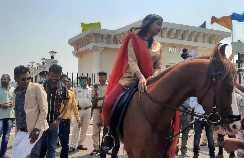 झारखंड विधानसभा में बजट सत्र के सातवें दिन कांग्रेस विधायक अंबा प्रसाद का ये अंदाज दिनभर चर्चा में रहा. वहीं विधायक ने कहा कि यह मेरे लिए सौभाग्य की बात है कि अर्जुन अवॉर्ड विजेता कर्नल रवि राठौड़ ने उन्हें ये घोड़ा भेंट किया है. उन्होंने कहा कि इस घोड़े की सवारी कर वे प्राउड फील कर रही हैं.