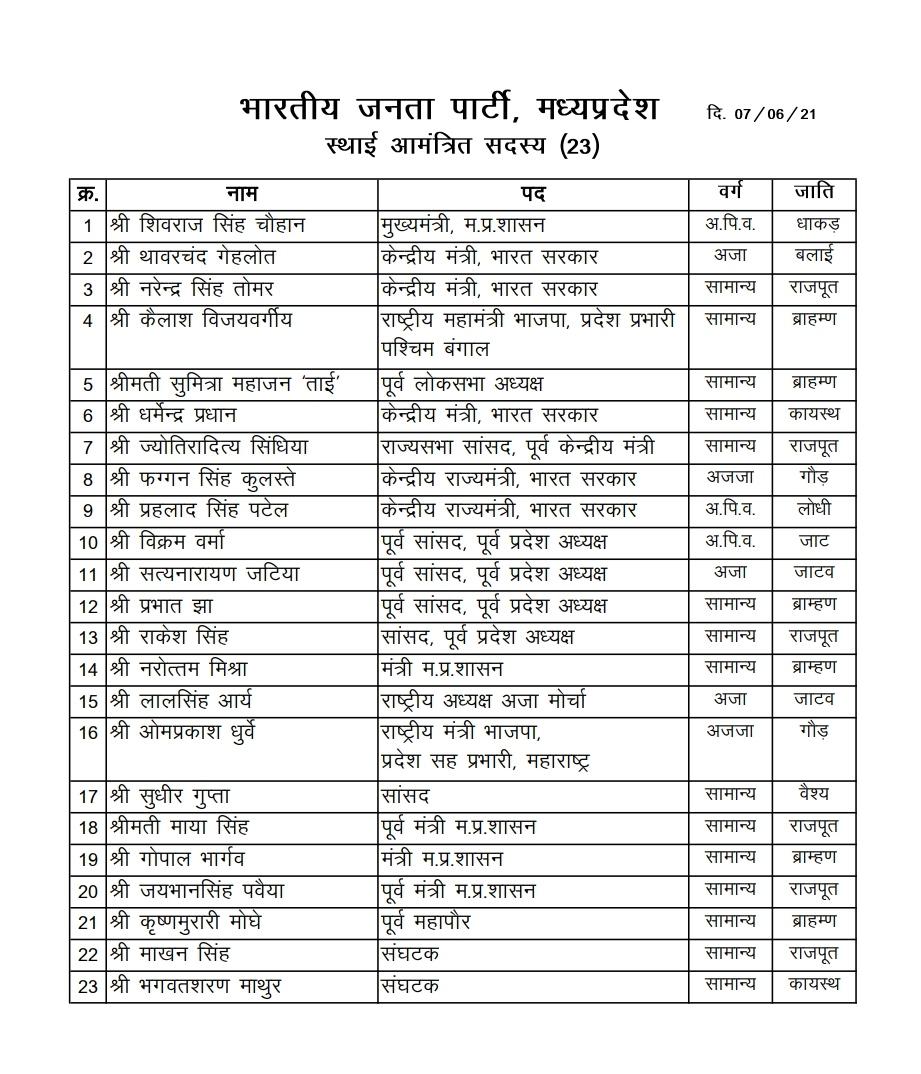 लंबे अंतराल के बाद मध्यप्रदेश बीजेपी ने मंगलवार रात को अपनी प्रदेश कार्यसमिति की घोषणा की लेकिन कुछ ही मिनटों में इस पर विवाद शुरू हो गया. बीजेपी कार्यसमिति की सूची में पदाधिकारियों के नाम के आगे उनकी जाति लिख दी गई.