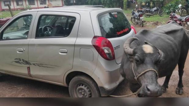 अगर आपसे कोई अधिकारी रिश्वत मांगे तो आप क्या करेंगे? आप रिश्वत देंगे? और आपके पास पैसे नहीं हुए तो क्या करेंगे? मध्य प्रदेश के विदिशा जिले से एक दिलचस्प मामला सामने आया है. यहां की सिरोंज तहसील में नायब तहसीलदार ने जब एक व्यक्ति से 25 हजार रुपये की रिश्वत मांगी तो उसने तहसीलदार की गाड़ी से अपनी भैंस को बांध दिया. और अब गाड़ी से बंधी इस भैंस ने सोशल मीडिया से लेकर अखबारों तक में सुर्खियां बटोर ली हैं.