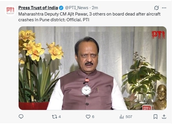 जानकारी के अनुसार, अजित पवार ने एक दिन पहले मुंबई में कैबिनेट बैठक में हिस्सा लिया था. इसके बाद वे पुणे जिले में 5 फरवरी को होने वाले जिला परिषद चुनावों के सिलसिले में बारामती जा रहे थे. अजित पवार महाराष्ट्र के वरिष्ठ भारतीय राजनेता हैं. वह रिकॉर्ड छठी बार महाराष्ट्र के उपमुख्यमंत्री बने थे. वह सत्तारूढ़ महायुति गठबंधन के अहम नेता हैं और राष्ट्रवादी कांग्रेस पार्टी (NCP) के राष्ट्रीय अध्यक्ष भी हैं.