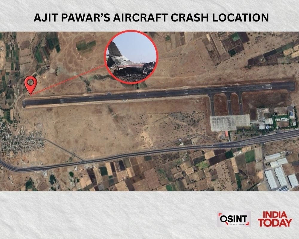 इंडिया टुडे ने सोशल मीडिया पर वायरल क्रैश वीडियो की जियोलोकेशन भी की. इससे यह पुष्टि हुई कि विमान बारामती एयरपोर्ट के रनवे से महज 50 मीटर की दूरी पर क्रैश हुआ. वीडियो में दिख रहे आसपास के मकान, जमीन का हल्का ऊंचा हिस्सा और पेड़ों का पैटर्न सैटेलाइट तस्वीरों से पूरी तरह मेल खाता है.