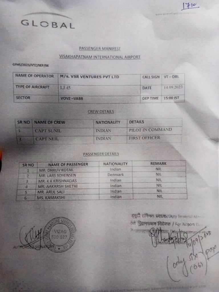 एमएफबी और एय़रपोर्ट के अधिकारियों के मुताबिक VSR वेंचर्स लियरजेट 45 विमान नंबर VT-DBL ने विशाखापट्टनम से मुंबई के लिए उड़ान भरी थी. इस छोटे और निजी प्लेन में 6 यात्री और 2 चालक दल सवार थे. मुंबई में रनवे पर उतरते वक्त चार्टर फिसल गया. इसके बाद रनवे को थोड़ी देर के लिए बंद कर दिया गया था.