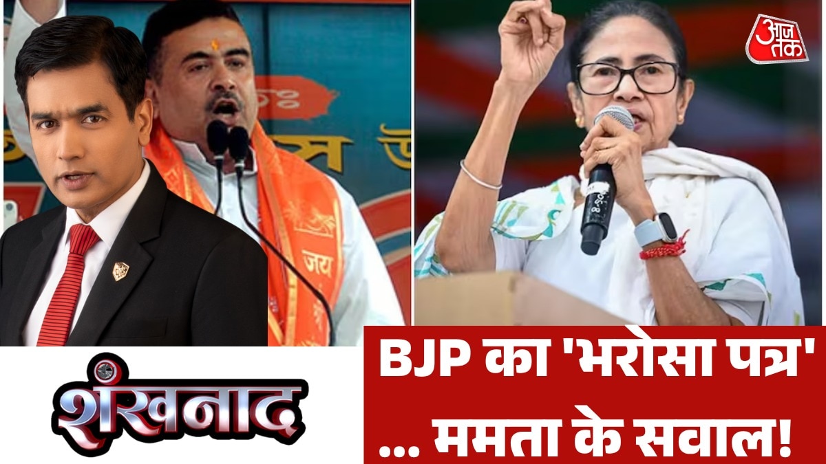 बंगाल के लिए आज बीजेपी ने अपना घोषणा पत्र जारी किया. जिसमें महिलाओं से लेकर युवाओं तक वादों का पिटारा खोला. इलके अलावा वहीं यूसीसी और घुसपैठ के मुद्दे को भी उठाया. हुमांयू कबीर और ओवैसी की जोड़ी बंगाल में मुस्लिम वोटर को अपनी ओर खींचने में लगी थी...लेकिन इस जोड़ी पर टीएमसी की ओर से जारी एक वीडियो ने घमासान तेज कर दिया. देखें शंखनाद.