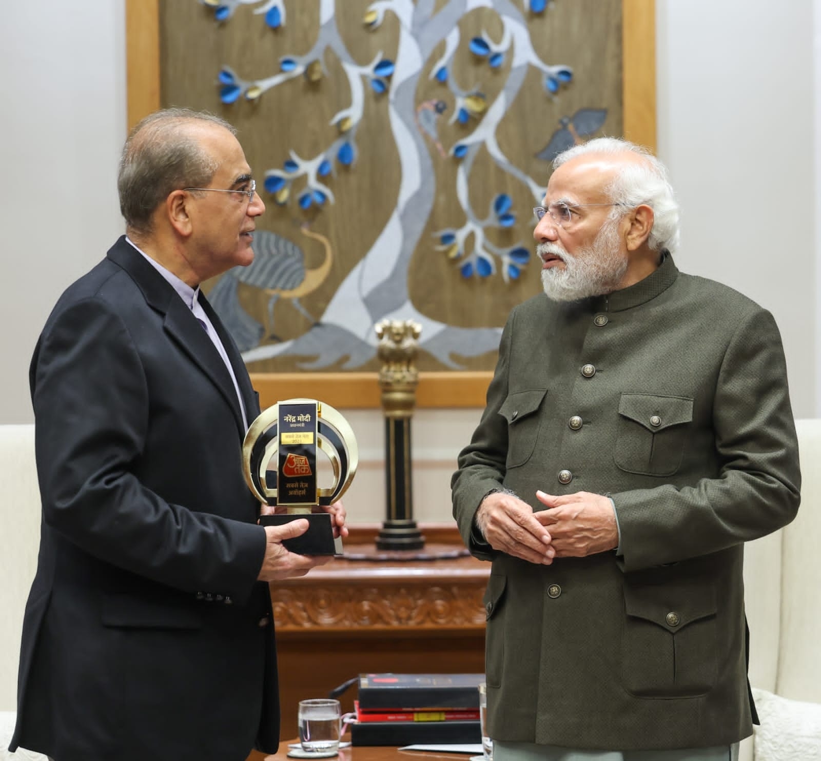 प्रधानमंत्री नरेंद्र मोदी को 2023 का 'सबसे तेज नेता' चुना गया है. दर्शकों ने सबसे तेज नेता के तौर पर पीएम मोदी को अपनी पहली पसंद बताया है. इंडिया टुडे ग्रुप के चेयरमैन और एडिटर इन चीफ अरुण पुरी और वाइस चेयरपर्सन कली पुरी ने पीएम मोदी से मुलाकात के दौरान उन्हें ये अवॉर्ड दिया था.
