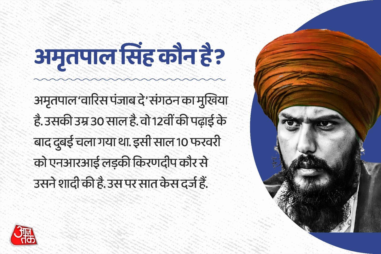 अमृतपाल 'वारिस पंजाब दे'संगठन का चीफ है. वह अलग देश खालिस्तान की मांग कर रहा है. वह कुछ दिन पहले ही दुबई से लौटा है. वारिस पंजाब दे संगठन को पंजाबी अभिनेता दीप सिद्धू ने बनाया था. दीप सिद्धू की मौत के बाद अमृतपाल ने इसपर कब्जा कर लिया. उसने भारत आकर संगठन में लोगों को जोड़ना शुरू किया. अमृतपाल का ISI लिंक बताया जा रहा है.
