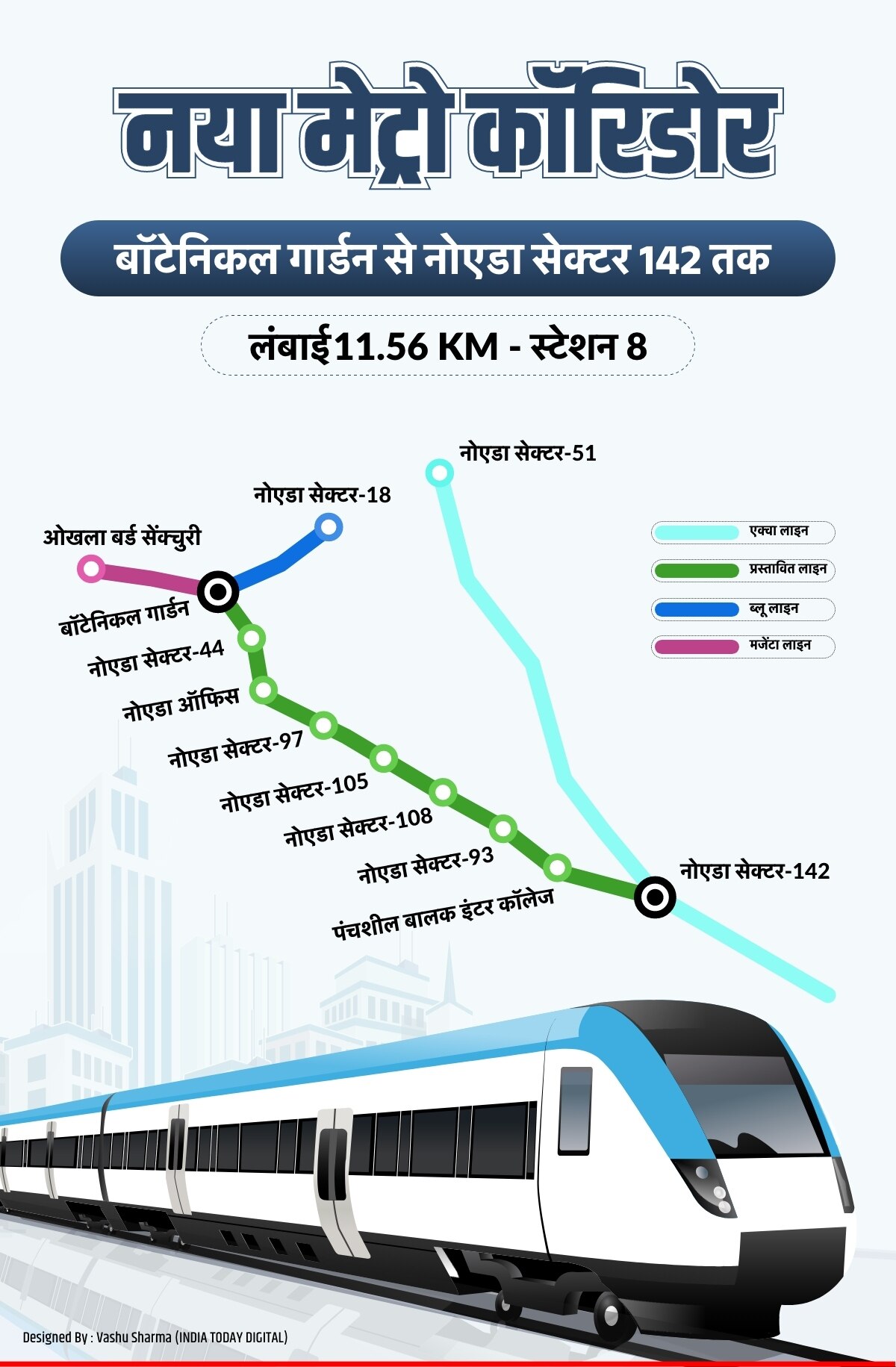 एक्वा लाइन के सेक्टर 142 से बॉटनिकल गार्डन तक नया कॉरिडोर
