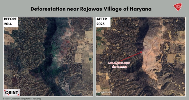 इस पूरे मुद्दे के केंद्र में है दुनिया की सबसे पुरानी पर्वत श्रृंखलाओं में से एक की पारिस्थितिकी में बढ़ता मानवीय हस्तक्षेप. मौजूदा रिपोर्ट्स और अध्ययनों के आधार पर, इंडिया टुडे ने सैटेलाइट इमेजरी की जांच कर उन क्षेत्रों की पहचान की, जहां मानव गतिविधियों ने स्पष्ट रूप से नुकसान किया है. ऐसा ही एक स्थान हरियाणा की बकरीजा पहाड़ी भी है, जहां खनन ने धरती की सतह पर गहरे घाव बना दिए हैं और जो कभी एक नीची पहाड़ी थी, उसे लगभग मिटा दिया गया है.