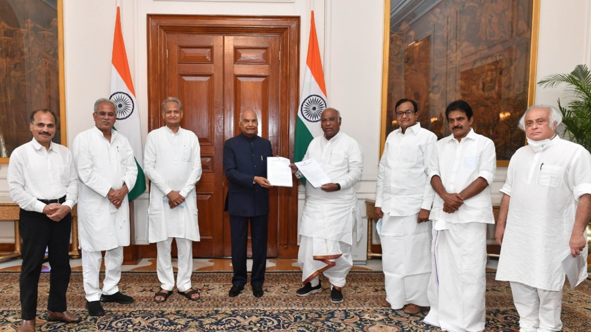कांग्रेस नेताओं ने राष्ट्रपति रामनाथ कोविंद से की मुलाकात की. इस दौरान उन्होंने अग्निपथ योजना का विरोध, पुलिस द्वारा सांसदों के साथ बदसलूकी और राहुल गांधी से ईडी की पूछताछ के संबंध में बातचीत की.