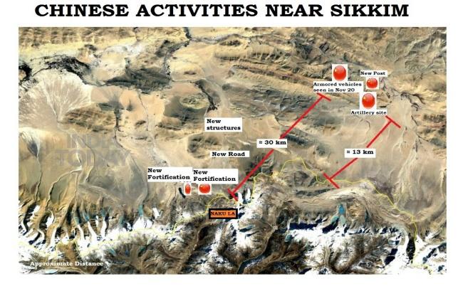 चीन नाकू ला से उत्तर-पूर्व में लगभग 30 किमी की दूरी पर एक बड़ी सैन्य चौकी बनाता हुआ भी दिखाई दे रहा है.