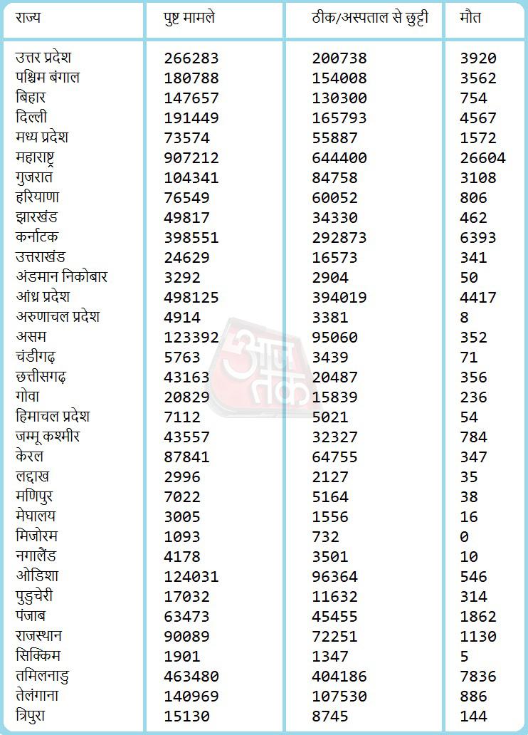 भारत में राज्यों के अनुसार कोरोना के आंकड़े...