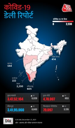 बीते 24 घंटे में देश में कोरोना के नए मामलों में थोड़ी गिरावट आई है. बीते दिन देश में कोरोना के 5,326 नए केस आए और 453 मरीजों की मौत हुई. कोरोना के नए मामले रविवार की तुलना में 18.8% कम हैं. सबसे ज्यादा 2,230 केस और सबसे ज्यादा 419 मौतें केरल में हुई हैं. एक्टिव केसेस की संख्या में भी कमी आई है. फिलहाल देश में इलाज करा रहे कोरोना मरीजों की संख्या 79,097 है.