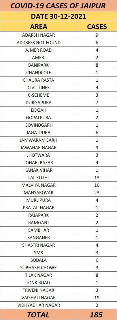राजस्थान के जयपुर में कोरोना के 185 केस सामने आए हैं.