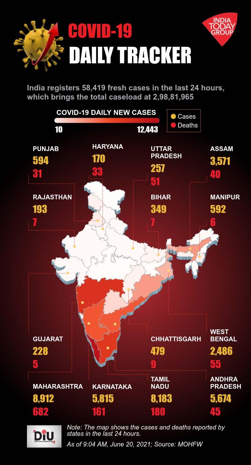 Covid-19, Corinavirus in India Latest Updates: भारत में कोरोना संक्रमण की रफ्तार पर अब सुस्त पड़ गई है. देश में बीते एक दिन में कोविड-19 के 58,419 नए मामले (New Cases) आने के बाद संक्रमण के कुल मामलों की संख्या बढ़कर 2,98,81,965 हो गई है. केंद्रीय स्वास्थ्य मंत्रालय के मुताबिक भारत में कोरोना मरीजों के ठीक होने की राष्ट्रीय दर यानी रिकवरी रेट (Recovery Rate) नए मामलों की तुलना में बहुत अधिक है.
