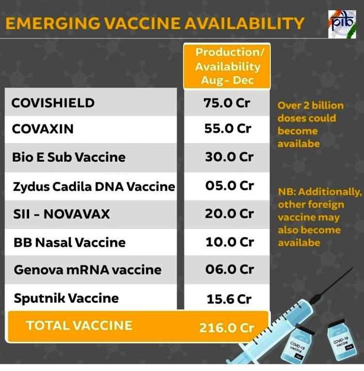 सरकार की शीर्ष थिंक टैंक माने जाने वाली संस्था नीति आयोग के सदस्य (स्वास्थ्य) डॉ. वीके पॉल ने कहा कि अगस्त से दिसंबर के बीच भारत में कोविड-19 वैक्सीन की 216 करोड़ से ज्यादा डोज उपलब्ध हो जाएगी.