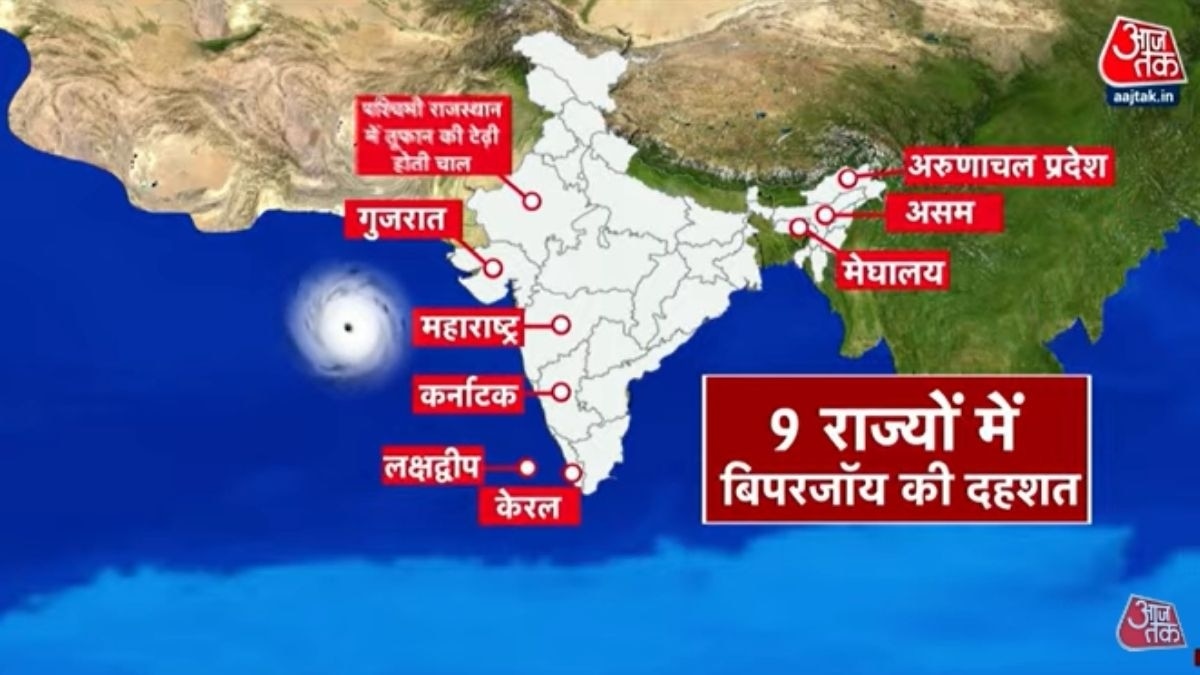 चक्रवाती तूफान बिपरजॉय 15 जून की शाम को गुजरात के कच्छ और पाकिस्तान के कराची से टकराएगा. इस दौरान हवाओं की रफ्तार 150 किलोमीटर प्रति घंटे तक रहने की संभावना है.