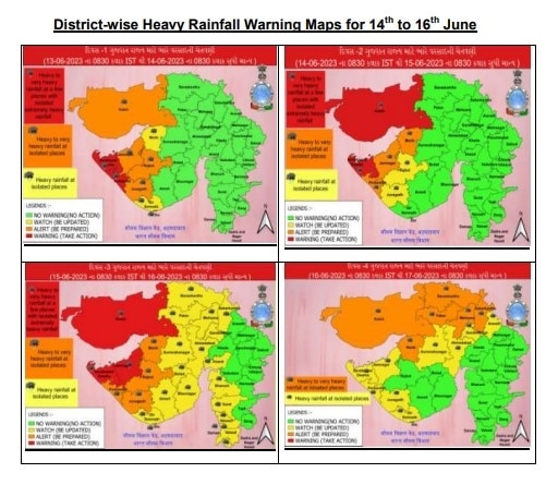 - कच्छ, द्वारका, पोरबंदर, जामनगर, जूनागढ़ , राजकोट और मोरबी जिलों में मछुआरों के समुद्र में जाने पर रोक लगा दी गई है. जो लोग समुद्र में हैं, उन्हें वापस लौटने की सलाह दी गई है. समुद्र से लगे इलाकों में लोगों से घरों पर रहने के लिए कहा गया है.