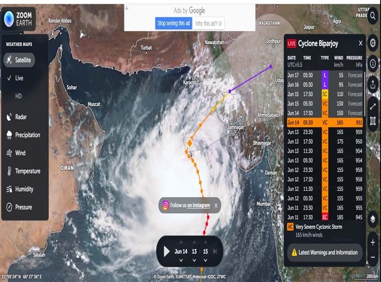 Live Tracker में देखें Cyclone Biparjoy का मूवमेंट और लाइव लोकेशन