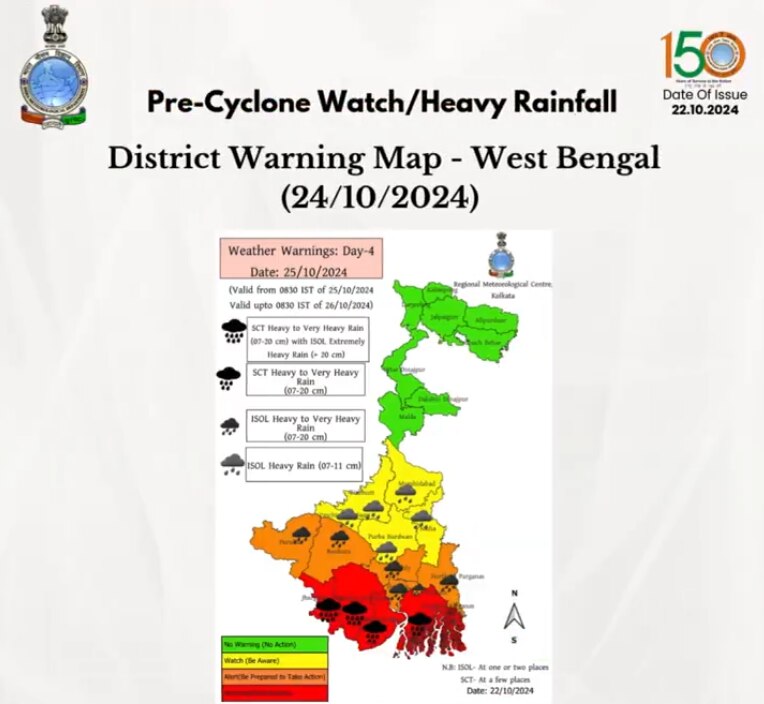 इसी को देखते हुए पुरी में चक्रवाती तूफान को देखते हुए मौसम विभाग ने मछुआरों को समुद्र से दूर रहने की हिदायत दी है. किसी भी स्थिति से निपटने के लिए NDRF की टीमें मौजूद हैं और लोगों को समुद्र से दूर रखा जा रहा है. वहीं, चक्रवाती तूफान को देखते हुए रेलवे भी अलर्ट है. ओडिशा, बंगाल रूट की दर्जनों ट्रेनें रद्द कर दी गई हैं. दक्षिण 24 परगना में भी साइक्लोन डाना को लेकर प्रशासनिक अधिकारियों की बैठक हुई है.