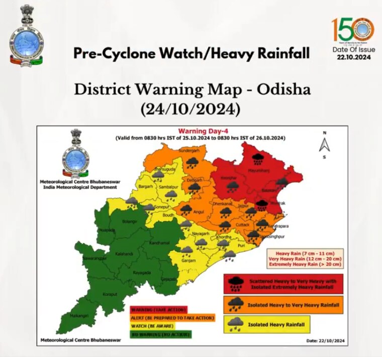 आईएमडी के पूर्वानुमान के आधार पर, ओडिशा सरकार ने अंगुल, पुरी, नयागढ़, खोरधा, कटक, जगतसिंहपुर, केंद्रपाड़ा, जाजपुर, भद्रक, बालासोर, क्योंझर, ढेंकनाल, गंजम और मयूरभंज जैसे 14 जिलों को अलर्ट पर रखा है.