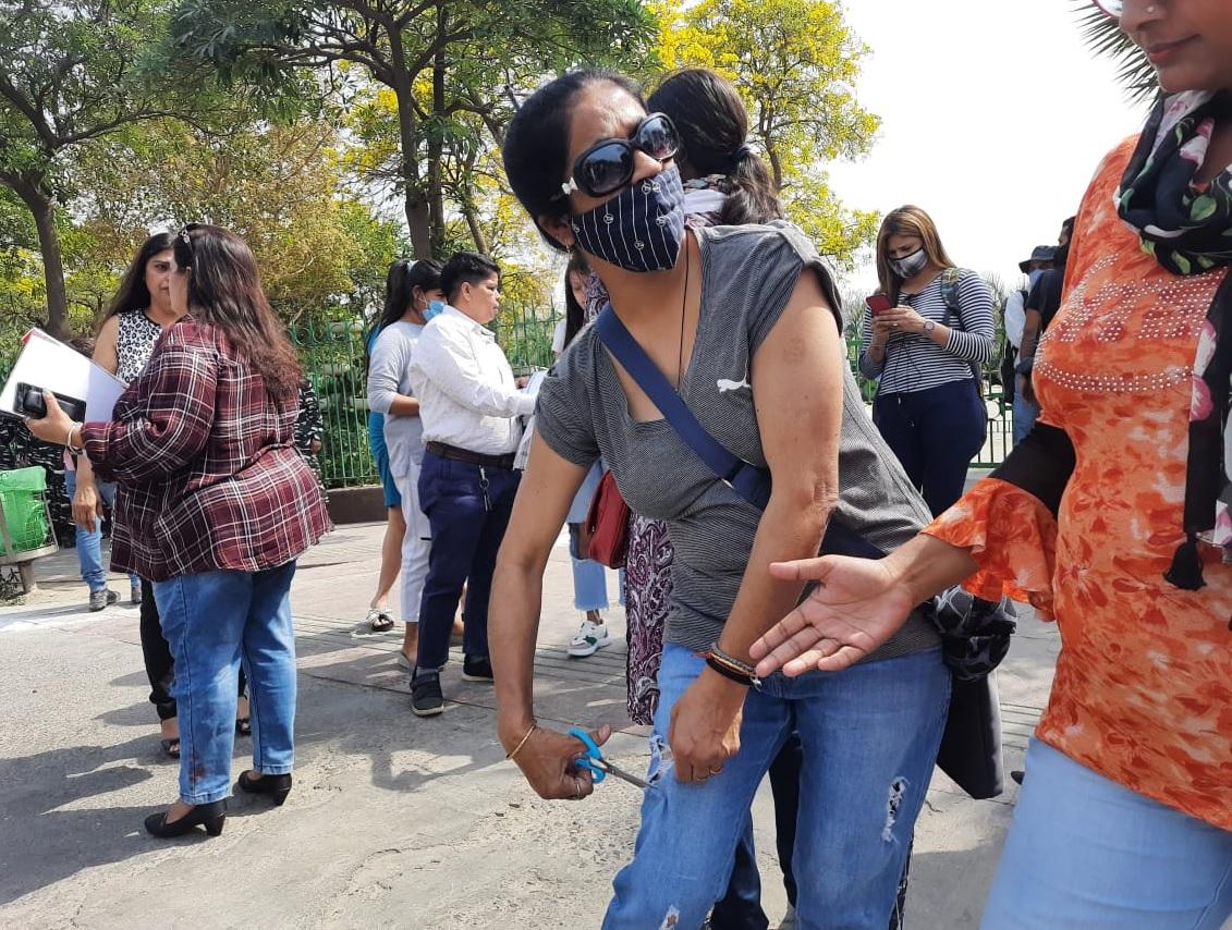 उत्तराखंड के मुख्यमंत्री तीरथ सिंह रावत के बयान पर बवाल अभी भी जारी है. शुक्रवार को महिला कांग्रेस की कार्यकर्ताओं ने दिल्ली के कनॉट प्लेस में विरोध प्रदर्शन किया. इस दौरान महिला कार्यकर्ता जींस पहनकर पहुंचीं और वहां पर कैंची से अपनी जींस को काटा.