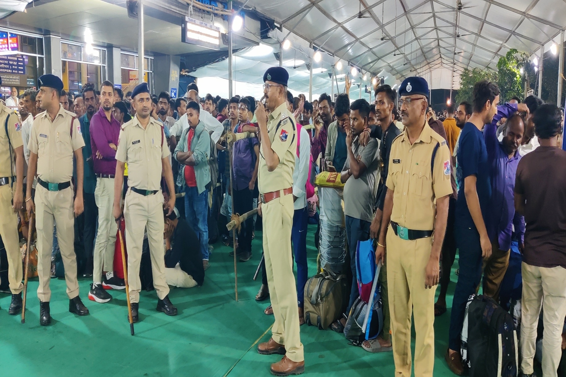 शनिवार को मुंबई के लोकमान्य तिलक टर्मिनस पर भी यात्रियों की भारी भीड़ देखने को मिली. लेकिन रेलवे ने यात्रियों की सुरक्षा और सुविधा को ध्यान में रखते हुए पुख्ता इंतज़ाम किए हैं. खासतौर पर जनरल कोच के यात्रियों के लिए रेलवे ने अलग-अलग खटाल (बैरिकेटेड एरिया) बनाए हैं. जहां यात्रियों को सुव्यवस्थित तरीके से खड़ा किया गया है, ताकि किसी तरह की धक्का-मुक्की या भगदड़ की स्थिति न बने. अलग-अलग ट्रेनों के लिए अलग-अलग खटाल तय किए गए हैं.