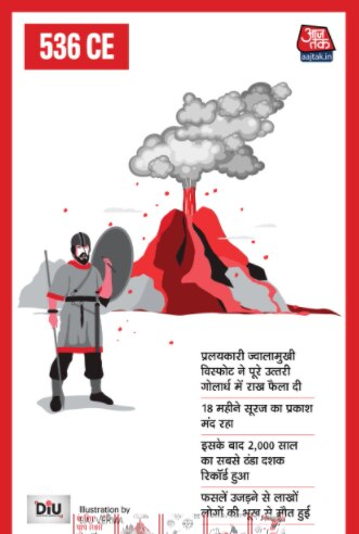536 CE (ईस्वी) के साथ दिक्कत की बात की जाए तो सबसे पहले आता है मौसम. इसके खराब होने की वजह थी- दो बड़े ज्वालामुखी विस्फोटों ने पृथ्वी को घने कोहरे से ढंक दिया था और सूरज की रोशनी को नीचे आने से रोक दिया था. तापमान नीचे गिरा और उत्तरी गोलार्ध के कुछ हिस्सों में गर्मियों में भी बर्फबारी होने लगी थी. जाहिर था कि इसने फूड सप्लाई चेन को गड़बड़ा दिया. नतीजतन, पूरे यूरोप (आज का यूरोपीय क्षेत्र) और आसपास के इलाकों को अकाल का सामना करना पड़ा.
