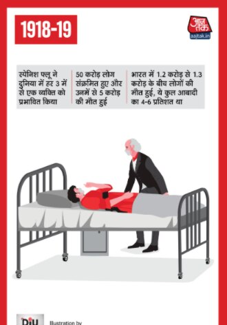 वर्ष 1918 में H1N1 इन्फ्लूएंजा महामारी में बदल गया, जिसने दुनिया के हर तीन लोगों में से लगभग एक को संक्रमित किया. करीब 50 करोड़ लोग संक्रमित हुए और 5 करोड़ की मौत हुई. भारत में इसने उत्तरी हिस्सों को निशाना बनाया, ,जिससे अनुमानित 1.2 से 1.3 करोड़ लोगों की मृत्यु हुई. यह कुल आबादी का लगभग 4-6 प्रतिशत हिस्सा था.