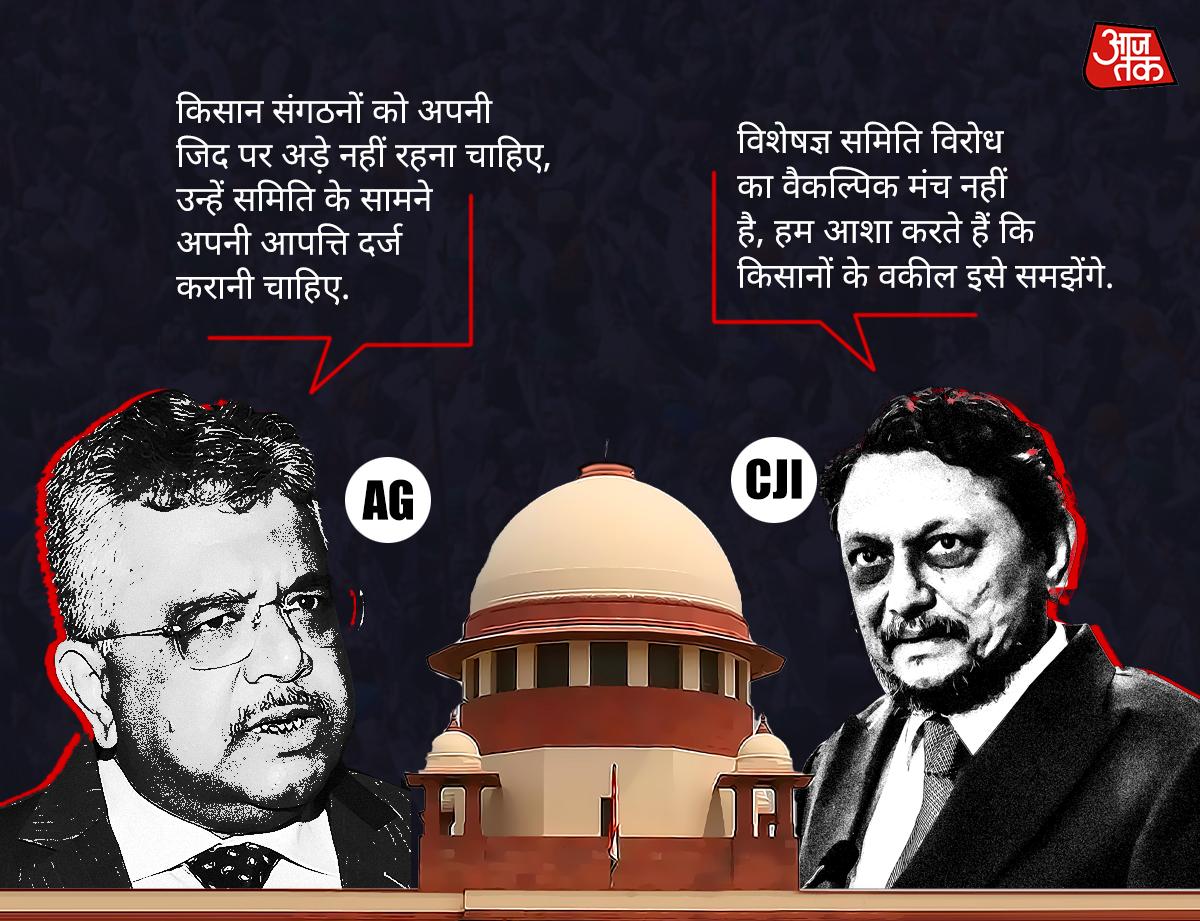 चीफ जस्टिस की ओर से अदालत में कहा गया कि हमें बताया गया कि कुल 400 संगठन हैं, क्या आप सभी की ओर से हैं. हम चाहते हैं कि किसान कमेटी के पास जाएं, हम इस मुद्दे का हल चाहते हैं हमें ग्राउंड रिपोर्ट बताइए. कोई भी हमें कमेटी बनाने से नहीं रोक सकता है. हम इन कानूनों को सस्पेंड भी कर सकते हैं. जो कमेटी बनेगी, वो हमें रिपोर्ट देगी.