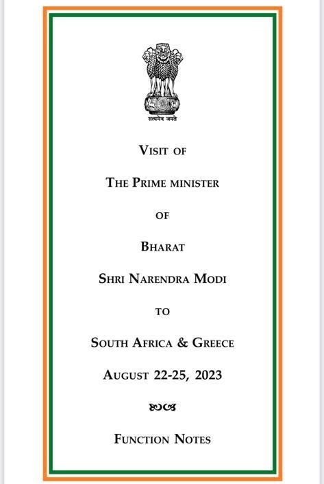 एक और बात सामने आई है. इंडिया को बदलकर देश के नाम की जगह भारत लिखना मोदी सरकार पहले ही शुरू कर चुकी थी. दरअसल, जब पीएम मोदी पिछले महीने साउथ अफ्रीका और ग्रीस के दौरे पर गए थे. तब उनके फंक्शन नोट्स पर भी भारत के प्रधानमंत्री लिखा हुआ था. लेकिन इसपर ध्यान अब गया.
