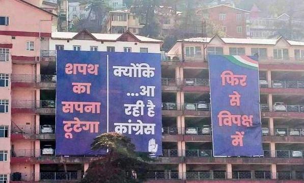 एक अन्य बैनर में कांग्रेस ने लिखा था- 'आ रही है कांग्रेस.' इसके जवाब में दूसरा बैनर लगाया गया और उसमें लिखा गया- 'जयराम जी के शपथ ग्रहण समारोह में.' इन पोस्टर बैनरों ने सोशल मीडिया पर काफी सुर्खियां बटोरी थीं.